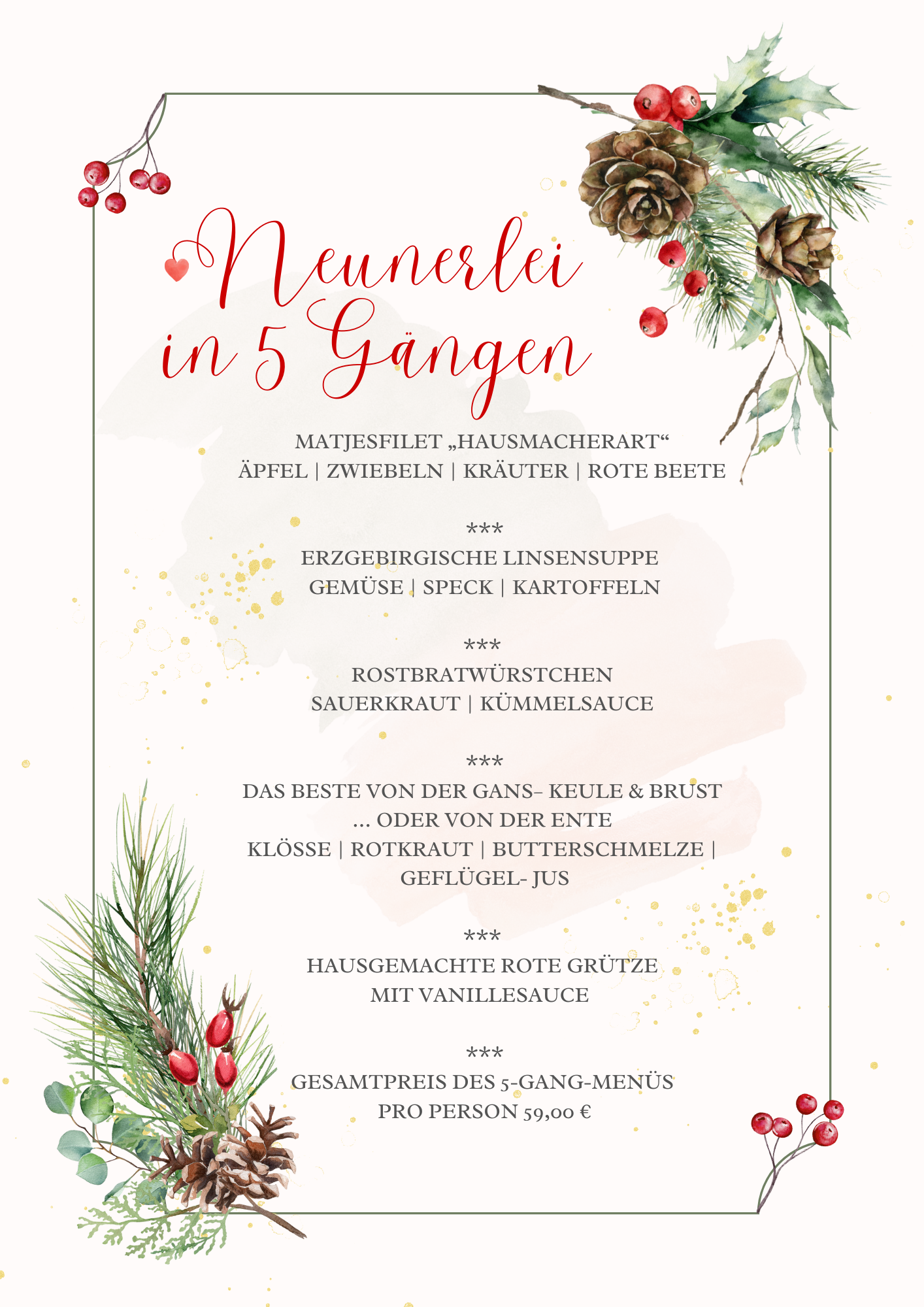 traditionelles "Erzgebirgisches Neunerlei" als 5 Gang - Menü á 59,00€ p.P.